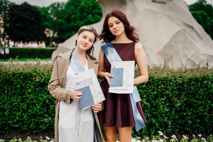 Особенно трогательным моментом стало вручение серебряной медали выпускнику школы "РОСТ" — Коваджи Милане. Ее медаль была торжественно вручена прямо у "Медного всадника", что сделало этот момент ещё более значимым и запоминающимся.